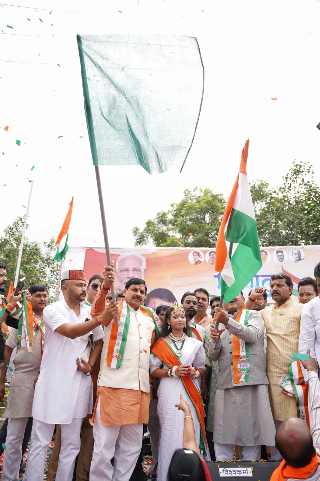 मुख्यमंत्री डॉ. मोहन यादव एवं भाजपा के प्रदेश महामंत्री एवं विधायक भगवान दास सबनानी ने भारत माता की प्रतिमा पर पुष्पांजलि अर्पित कर किया तिरंगा यात्रा को रवाना