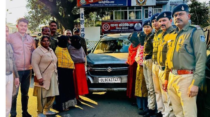 भोपाल। थाना कोहेफिजा पुलिस ने अंतरराज्यीय चोर गिरोह का पर्दाफाश कर अंजली सिंह,नगमा नायडू, ज्योति गोला और मधु नायडू नाम की चार महिलाओं को चोरी के आरोप में गिरफ्तार किया है चारों महिलाएं अंबेडकर नगर नई दिल्ली की रहने वाली है। 8 जनवरी की शाम 6:30 बजे कोहेफिजा निवासी प्रेमलता यादव अपने घर से लालघाटी जा रही थी भूत बंगले के पास एक महिला ने पंचवटी का पता पूछा और एक अन्य महिला ने पीछे से उनके गले से चेन लूट ली फिर चारों महिलाओं ने उनके साथ मारपीट की और फरार हो गई। पुलिस ने मामला दर्ज कर छानबीन शुरू की जिसमें घटनास्थल के आसपास के सीसीटीवी फुटेज,तकनीकी साक्ष्य एवं मुखबिर से सूचना के आधार पर गांधीनगर से चारों महिलाओं को वाहन समेत दबोचा है। पूछताछ में महिलाओं ने 1 जनवरी को जैन चल समारोह में लालघाटी में सोने की 9 चैन चोरी करने का खुलासा किया है। पकड़ी गई महिलाएं देश के अन्य राज्यों एवं जिलों में भागवत कथा, जुलूस, धार्मिक कार्यक्रम, मंदिर के प्रोग्राम, बारात आदि में जाकर चोरी की घटनाओं को अंजाम देती थी। पकड़ी गई महिलाओं का देश के अन्य राज्यों में अपराधिक रिकॉर्ड दर्ज है।