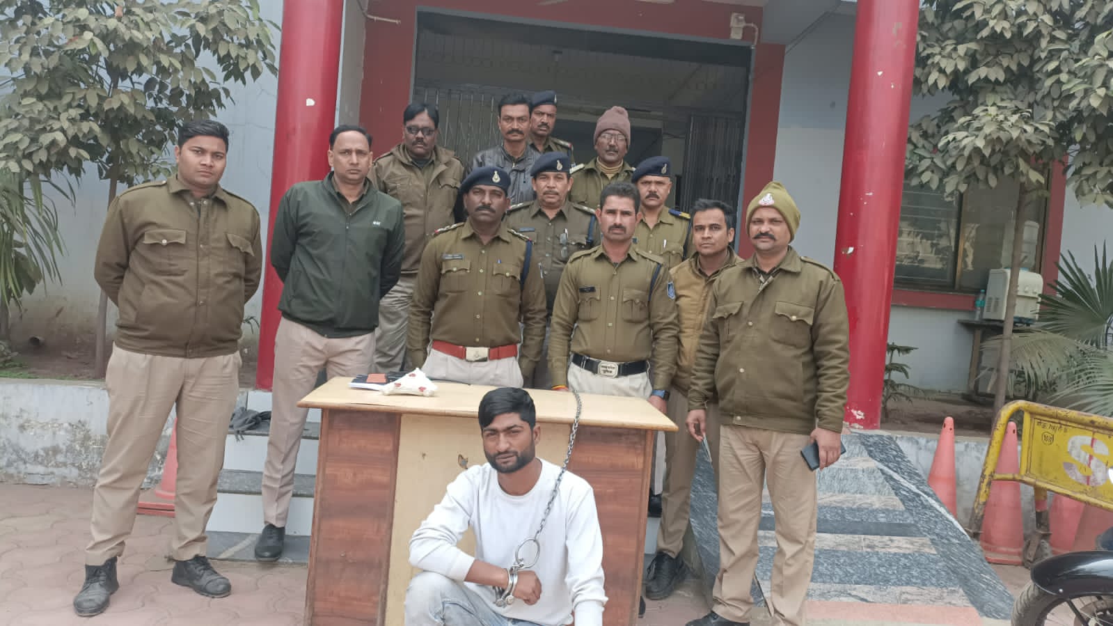 भोपाल। थाना ऐशबाग पुलिस ने दहशत फैलाने वाले आरोपी को दबिश देकर पकड़ा है। पुलिस ने आरोपी का छेत्र में जुलूस भी निकाला है। आरोपी ने 28 दिसंबर को अपने साथियों के साथ मिलकर तालिब खान और नफीस नाम के लकड़ो पर अवैध हथियारों के साथ जानलेवा हमला किया था और मौके से फरार हो गए थे। तालिब और नफीस अपनी स्कूटी से सोनिया गांधी पुलिया से बाग फरहत अफजा गेट की तरफ जा रहे थे जैसे ही वो पतंग वाली गली अफकार कालोनी पहुंचे तभी बाग फरहत अफजा का रहने वाला अमन तथा अरमान दोनो ने अचानक गली में सामने आकर उनकी गाडी रोकी और दोनो ने हमे गंदी गंदी गालियां देने लगे फिर अरमान खान ने अपने हाथ में रखे कट्टे से जान से मारने के लिए सीने की तरफ फायर किया तो गोली नफीस के बांये हाथ में लगी तो दोनों लड़के गाडी सहित नीचे गिर गये तभी अमन ने अपने हाथ में रखे बडे छुरे से नफीस को मारा जो उसके सिर में लगा फिर अमन ने छुरे से तालिब के गले पर मारा अपने बचाव में तालिब ने हाथ से छुरा रोका तो छुरा उसकी बांये हाथ के अंगूठे में लग गया। वरिष्ठ अधिकारियों के निर्देश में थाना प्रभारी जितेन्द्र गढवाल के नेतृत्व में विशेष टीम का गठन कर आरोपी की धरपकड के लिए लगाया गया। फरियादी द्वारा बताया गये आरोपियो व विडियो फुटेज एवं फोटो के आधार आरोपियो की पहचान कर प्रकरण के आरोपी अमन अली उर्फ बच्चा (23) निवासी बाग फरहत आफजा को तत्काल मय छुरी गिरफ्तार किया गया एवं अरबाज खान (24) निवासी ऐशबाग को छुरी के साथ गिरफ्तार किया गया व एक विधि विरूध्द बालक एवं आरोपी अरमान खान (25) निवासी बाग फरहत अफजा ऐशबाग को घटना में प्रयुक्त पिस्टल के साथ गिरफ्तार किया गया। पकड़े गए आरोपी अपराधिक प्रवृत्ति के जिन पर पूर्व में भी कई अपराध पाए गए हैं।