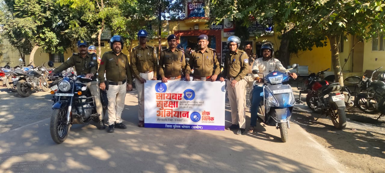 भोपाल (ग्रामीण) पुलिस अधीक्षक प्रमोद कुमार सिन्हा के दिशा निर्देशन में नोडल अधिकारी अतिरिक्त पुलिस अधीक्षक डॉ नीरज चौरसिया के मार्गदर्शन में जिले के समस्त थाना स्तर पर पुलिस की अलग-अलग टीमों द्वारा कार्ययोजना अनुसार सोशल मीडिया प्लेटफार्म फेसबुक, X, इंस्टाग्राम सार्वजनिक व भीड़-भाड़ वाले स्थानों पर बैनर पोस्टर व जनसंवाद कर जागरूकता कायक्रम आयोजित कर लोगों को सायबर अपराधों एवं इससे सुरक्षा के प्रति जागरुक किया गया ।