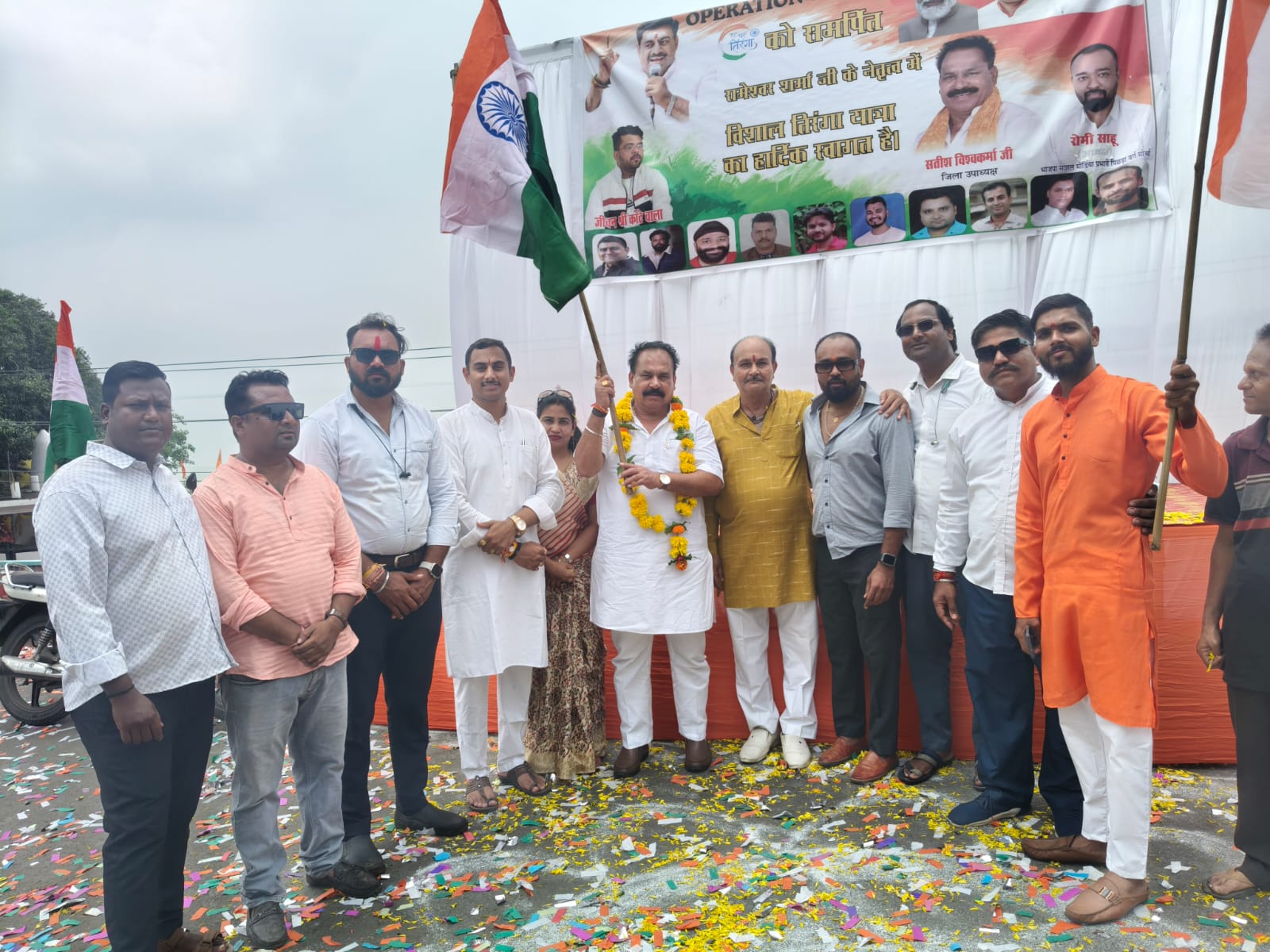 भोपाल। हुजूर विधानसभा में निकली भारत की विशाल तिरंगा यात्रा का कमला पार्क पर भव्य स्वागत किया गया। यहां भाजपा जिला उपाध्यक्ष सतीश विश्वकर्मा, ओबीसी मोर्चा के रोमी साहू, महिला मोर्चा की प्रियंका चौरसिया, अमित, मुकेश, अनिकेत, अशोक वर्मा, आयुष साहू सहित अनेक कार्यकर्ताओं ने विशेष मंच सजाया। मंच से यात्रा में शामिल बाइक सवार और पैदल देशभक्तों पर पुष्पवर्षा की गई। देशभक्ति के नारे और वंदे मातरम् की गूंज से पूरा क्षेत्र उत्साह और जोश से भर उठा। तिरंगा लहराते हुए यात्रा के स्वागत में सैकड़ों नागरिक भी शामिल हुए और माहौल पूरी तरह देशभक्ति के रंग में रंग गया।