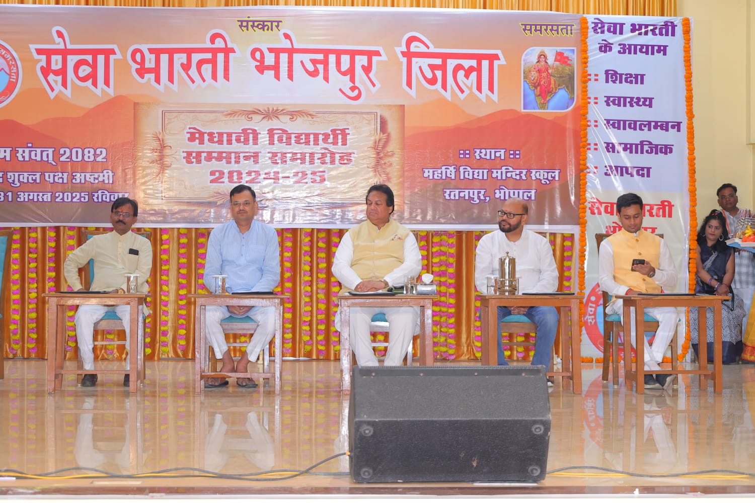 समारोह में संस्कार केंद्रों में 75 प्रतिशत से अधिक अंक प्राप्त करने वाले मेधावी छात्र-छात्राओं का सम्मान अतिथियों द्वारा किया गया। कार्यक्रम में प्रांत युवा आयाम संयोजक एवं भोजपुर जिला सचिव संकल्प दीक्षित जी, भोजपुर जिला उपाध्यक्ष अभय तोमर जी, दिनेश नागर जी, शैलेन्द्र समैंया जी, सह सचिव संजीव चौकसे जी, कोषाध्यक्ष कपिल परमार जी, मीडिया प्रभारी रामकृष्ण चौरसिया जी, सदस्य मनोज योगी जी, महिला संयोजिका श्रीमती पूर्णिया जैन जी, नगर महिला सह संयोजिका श्रीमती वर्षा श्रीवास्तव जी, नगर सचिव एवं पूर्णकालिक श्री वीरेंद्र कीर जी सहित अन्य कार्यकारिणी व महिला मंडल सदस्य बड़ी संख्या में उपस्थित रहे। समारोह का समापन सेवा भारती भोजपुर जिला अध्यक्ष राजकुमार श्रीवास्तव जी के धन्यवाद ज्ञापन एवं भारत माता की आरती के साथ हुआ।