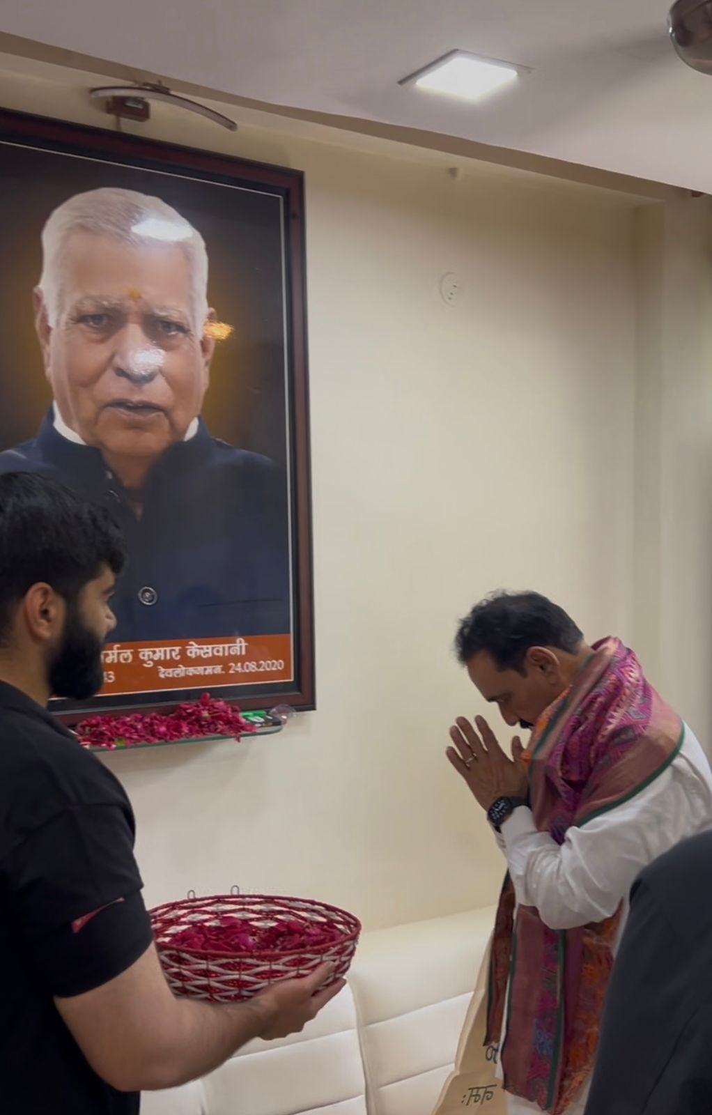 भोपाल। समाजसेवी स्व. दादा निर्मल कुमार केसवानी को मध्यप्रदेश के पूर्व गृह मंत्री और वरिष्ठ भाजपा नेता डॉ. नरोत्तम मिश्रा ने श्रद्धांजलि अर्पित की। उन्होंने निर्मल केसवानी के पुत्र भाजपा प्रवक्ता डॉ. दुर्गेश केसवानी के निवास पर पहुंचकर दादा निर्मल केसवानी के चित्र पर पुष्प अर्पित कर उन्हें नमन किया।