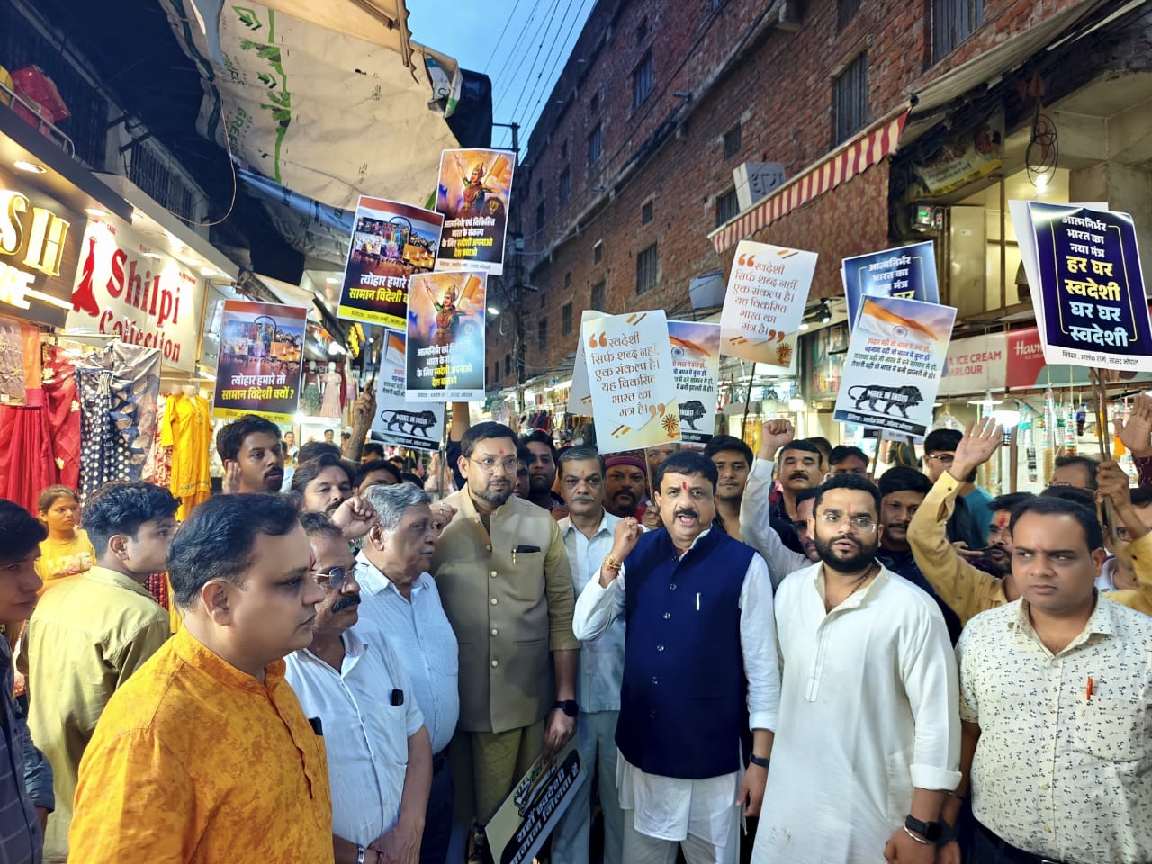 जन जागरण के दौरान सांसद शर्मा और व्यापारियों ने संकल्प लिया कि प्रधानमंत्री नरेंद्र मोदी के संकल्प को आगे बढ़ाते हुए वे अपनी दुकानों पर स्वदेशी सामान ही बेचेंगे।