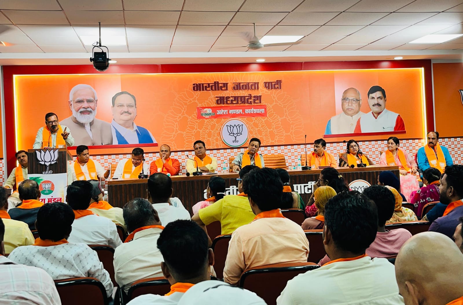 कार्यशाला में मंडल अध्यक्ष अभिषेक पुरोहित ने 17 सितंबर से 2 अक्टूबर तक के कार्यक्रमों की रूपरेखा प्रस्तुत की और अतिथियों का स्वागत किया। इस अवसर पर महेंद्र सिंह यादव, ध्रुव नारायण सिंह, डॉ. योगेंद्र मुखरैया, अशोक सैनी, राजेंद्र गुप्ता, डॉ. अनिल पचौरी, राजकुमार विश्वकर्मा, अश्विनी राय, निखिलेश मिश्रा, अभिषेक पुरोहित, शक्ति दुबे और शशि सिनहो मंचासीन रहे। मंच संचालन महेंद्र वर्मा ने किया और आभार मुकुल लोखंडे ने व्यक्त किया।
