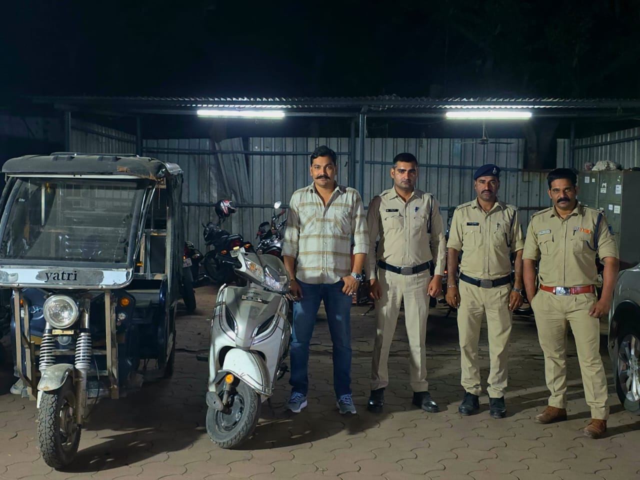 भोपाल। थाना हनुमानगंज पुलिस ने चोरी की घटनाओं पर प्रभावी कार्रवाई करते हुए एक शातिर वाहन चोर को गिरफ्तार किया है। आरोपी से एक तीन पहिया ई-रिक्शा और एक स्कूटी सहित कुल ₹2.12 लाख का मशरूका बरामद किया गया है। पुलिस के अनुसार, 12 अक्टूबर की सुबह थाना हनुमानगंज पुलिस को सूचना मिली थी कि सिंधी कॉलोनी क्षेत्र में एक व्यक्ति चोरी किए गए ई-रिक्शा के साथ खड़ा है। सूचना के आधार पर पुलिस टीम तत्काल मौके पर पहुंची और संदिग्ध युवक को घेराबंदी कर पकड़ा। पूछताछ में युवक ने अपना नाम अमन पिता अब्दुल लईक खान (20 वर्ष), निवासी हाउसिंग बोर्ड कॉलोनी, थाना निशातपुरा, भोपाल बताया। आरोपी ने बताया कि उसने तीन दिन पहले नादरा बस स्टैंड स्थित बिजली कार्यालय के पास से ई-रिक्शा चोरी किया था, वहीं चार से पांच दिन पहले उसने उसी क्षेत्र से एक सफेद रंग की एक्टिवा स्कूटी भी चोरी की थी। पुलिस ने दोनों वाहन बरामद कर लिए हैं। आरोपी के खिलाफ पूर्व में भी चोरी के अपराध दर्ज हैं। उसे गिरफ्तार कर न्यायालय में पेश किया गया।