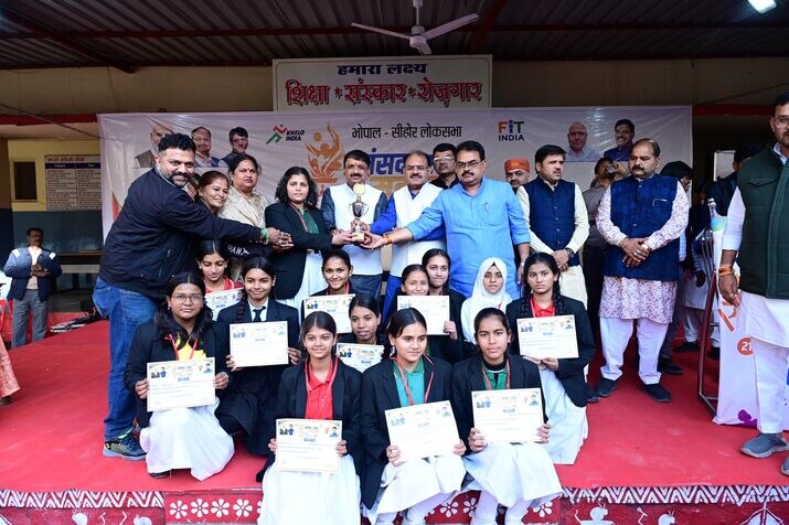 भोपाल। सांसद खेल महोत्सव 2025 में शनिवार को खेल भावना और जोश का अनूठा माहौल देखने को मिला। कार्यक्रम में पहुंचे सांसद आलोक शर्मा और विधायक भगवानदास सबनानी ने रस्साकसी में हिस्सा लेकर खिलाड़ियों का उत्साह बढ़ाया। प्रधानमंत्री के विजन “फिट युवा फॉर विकसित भारत” को साकार करने के लिए सांसद आलोक शर्मा के नेतृत्व में संसदीय क्षेत्र में कबड्डी, खो-खो, वॉलीबॉल, फुटबॉल, दौड़, लंबी कूद, ऊंची कूद, नींबू-चम्मच दौड़ और एथलेटिक्स जैसी प्रतियोगिताएँ आयोजित की जा रही हैं। तुलसी नगर स्थित शासकीय नवीन कन्या उच्चतर माध्यमिक विद्यालय में हुए सम्मान समारोह में मॉडल स्कूल्स, कमला नेहरू, कस्तूरबा, सरदार पटेल और अरविंदो स्कूल के विजेता व प्रतिभागियों को सम्मानित किया गया। इस दौरान विधायक भगवानदास सबनानी, भाजपा जिला अध्यक्ष रविंद्र यति, मनोज राठौर, अश्वनी राय, जोन अध्यक्षा ब्रजुला सुचान, भाजपा मंडल अध्यक्ष सोनू पालीवाल और प्राचार्या वंदना शुक्ला उपस्थित रहीं। सांसद शर्मा ने बाद में सांदीपनि स्कूल, बरखेड़ी पहुँचकर भी विजेता खिलाड़ियों को सम्मानित किया। उन्होंने कहा सांसद खेल महोत्सव से नई खेल चेतना का उदय हो रहा है, आज के ये युवा आगे चलकर देश को स्वर्ण पदक दिलाएंगे।
